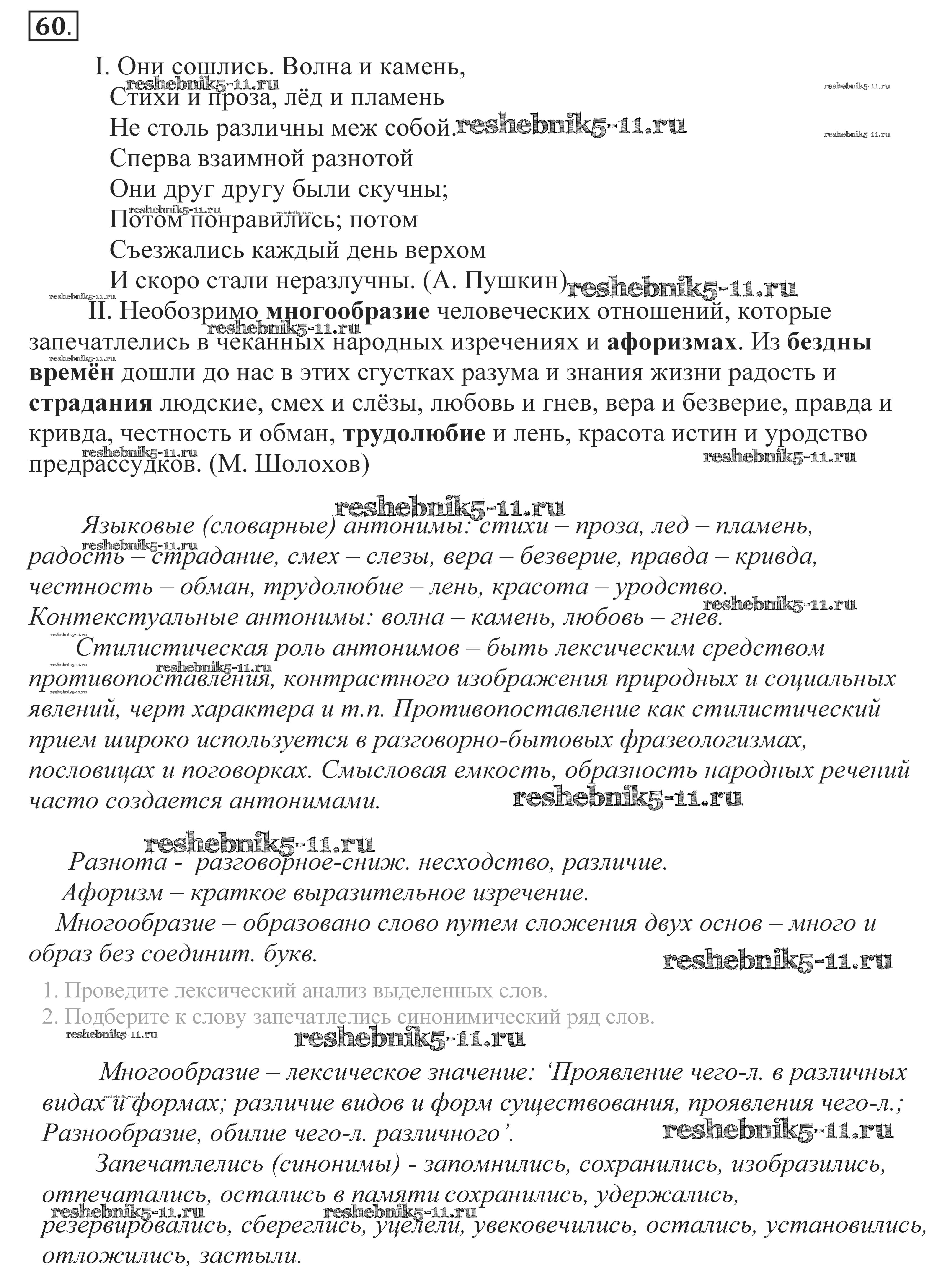 Готовая домашняя работа с ответами по Русскому языку за 10, 11 класс Власенков, Рыбченкова Учебник Базовый уровень Просвещение 2014 - Упражнения 60