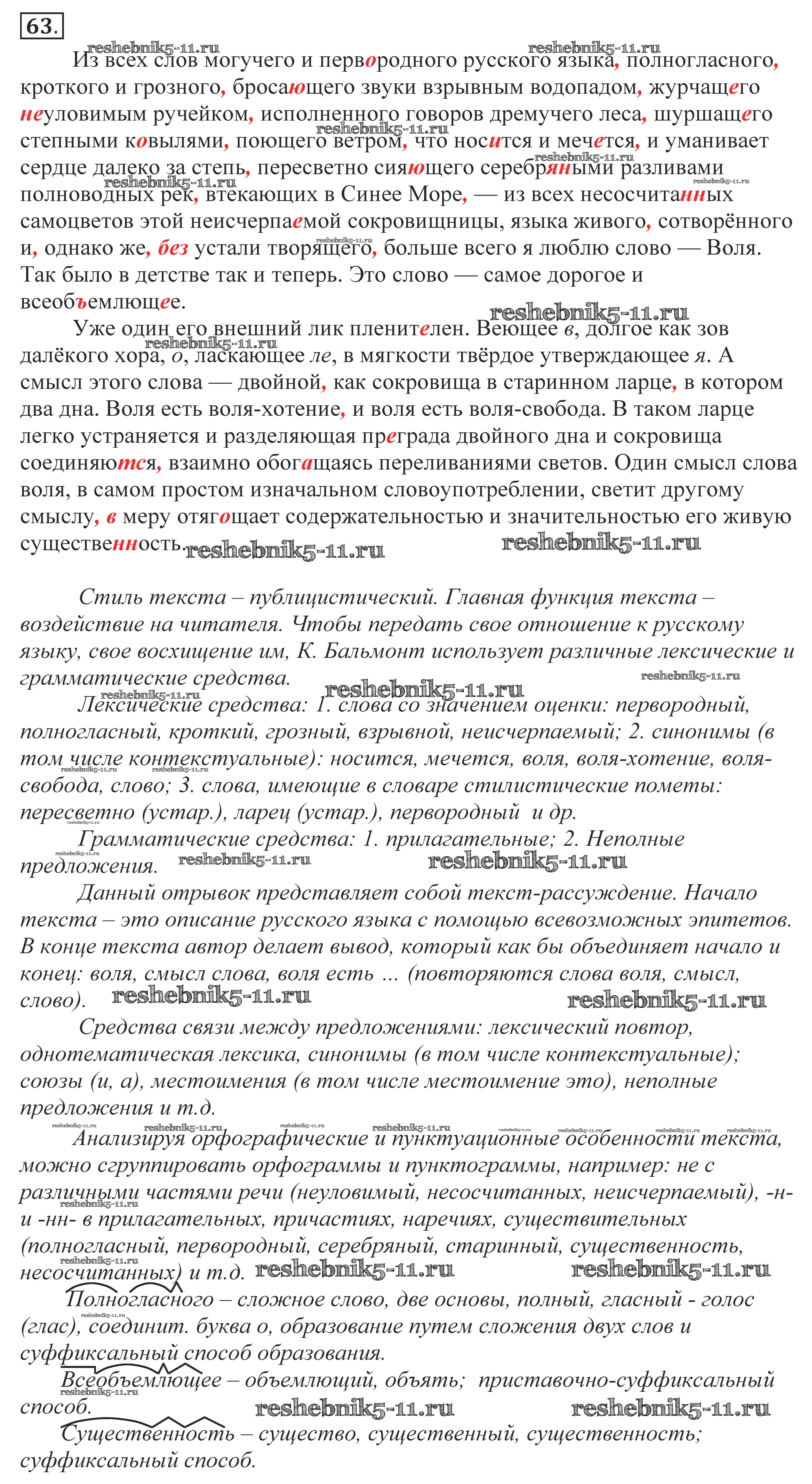 Готовая домашняя работа с ответами по Русскому языку за 10, 11 класс Власенков, Рыбченкова Учебник Базовый уровень Просвещение 2014 - Упражнения 63