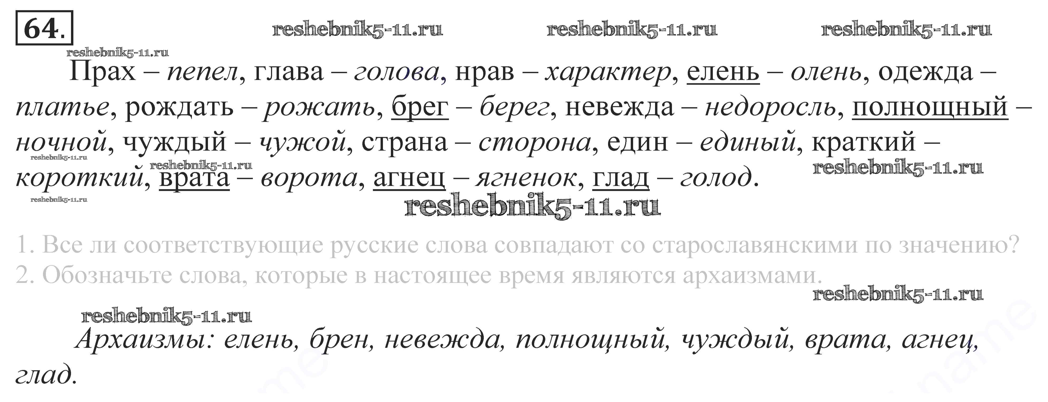 Готовая домашняя работа с ответами по Русскому языку за 10, 11 класс Власенков, Рыбченкова Учебник Базовый уровень Просвещение 2014 - Упражнения 64