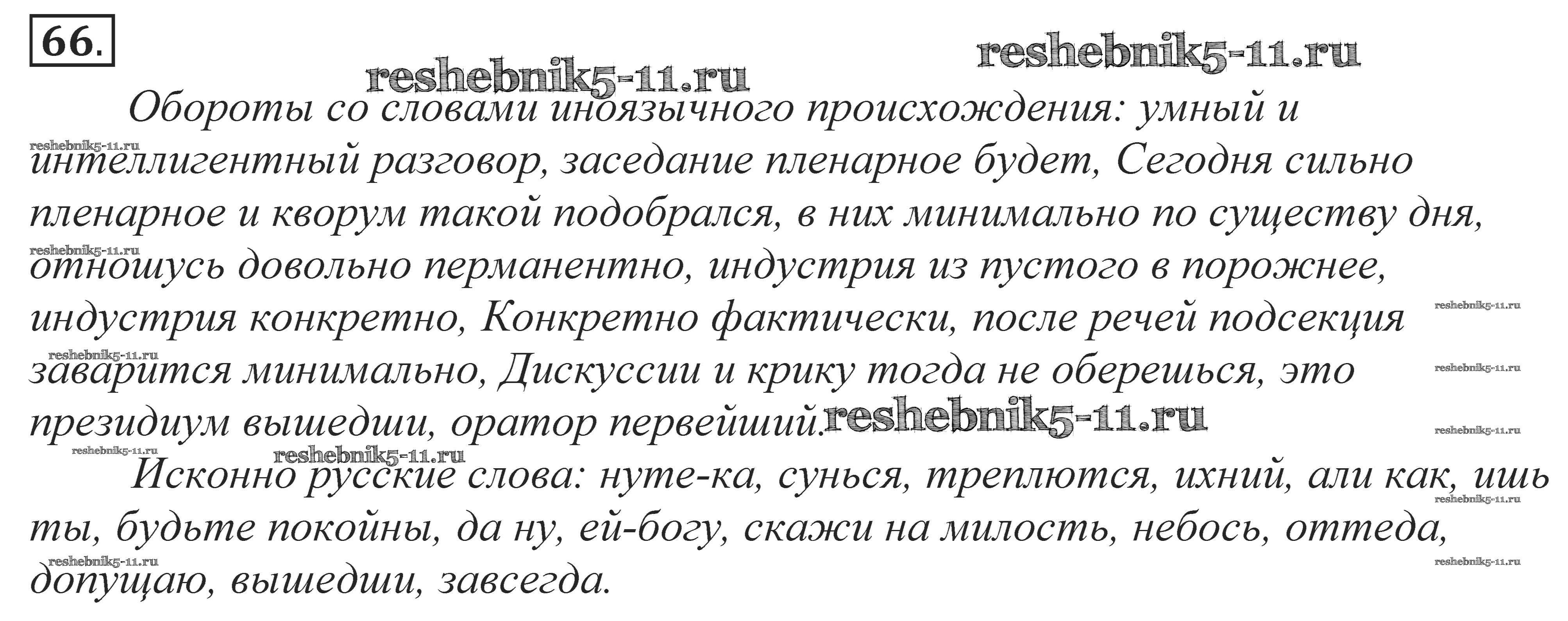 Готовая домашняя работа с ответами по Русскому языку за 10, 11 класс Власенков, Рыбченкова Учебник Базовый уровень Просвещение 2014 - Упражнения 66