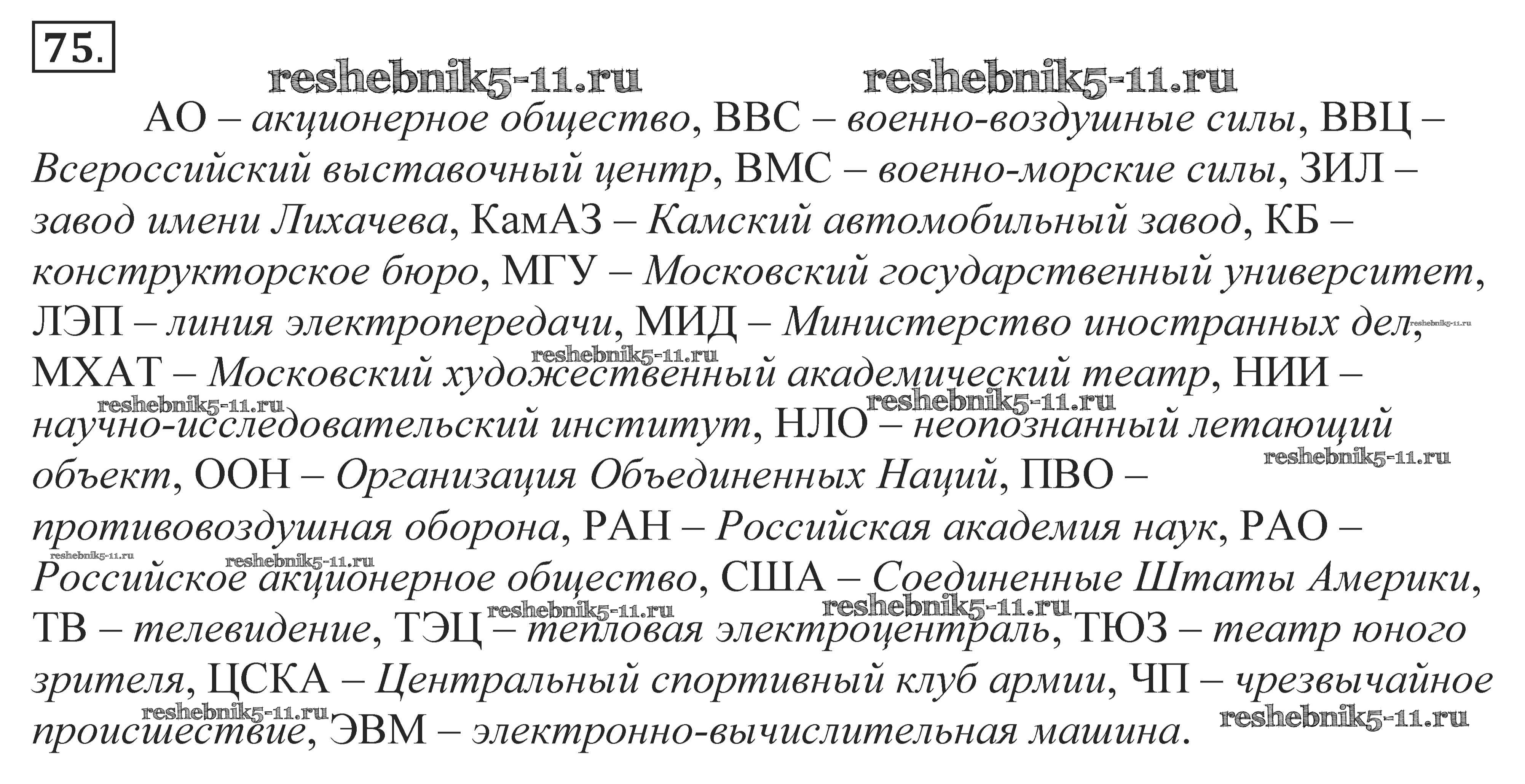 Готовая домашняя работа с ответами по Русскому языку за 10, 11 класс Власенков, Рыбченкова Учебник Базовый уровень Просвещение 2014 - Упражнения 75