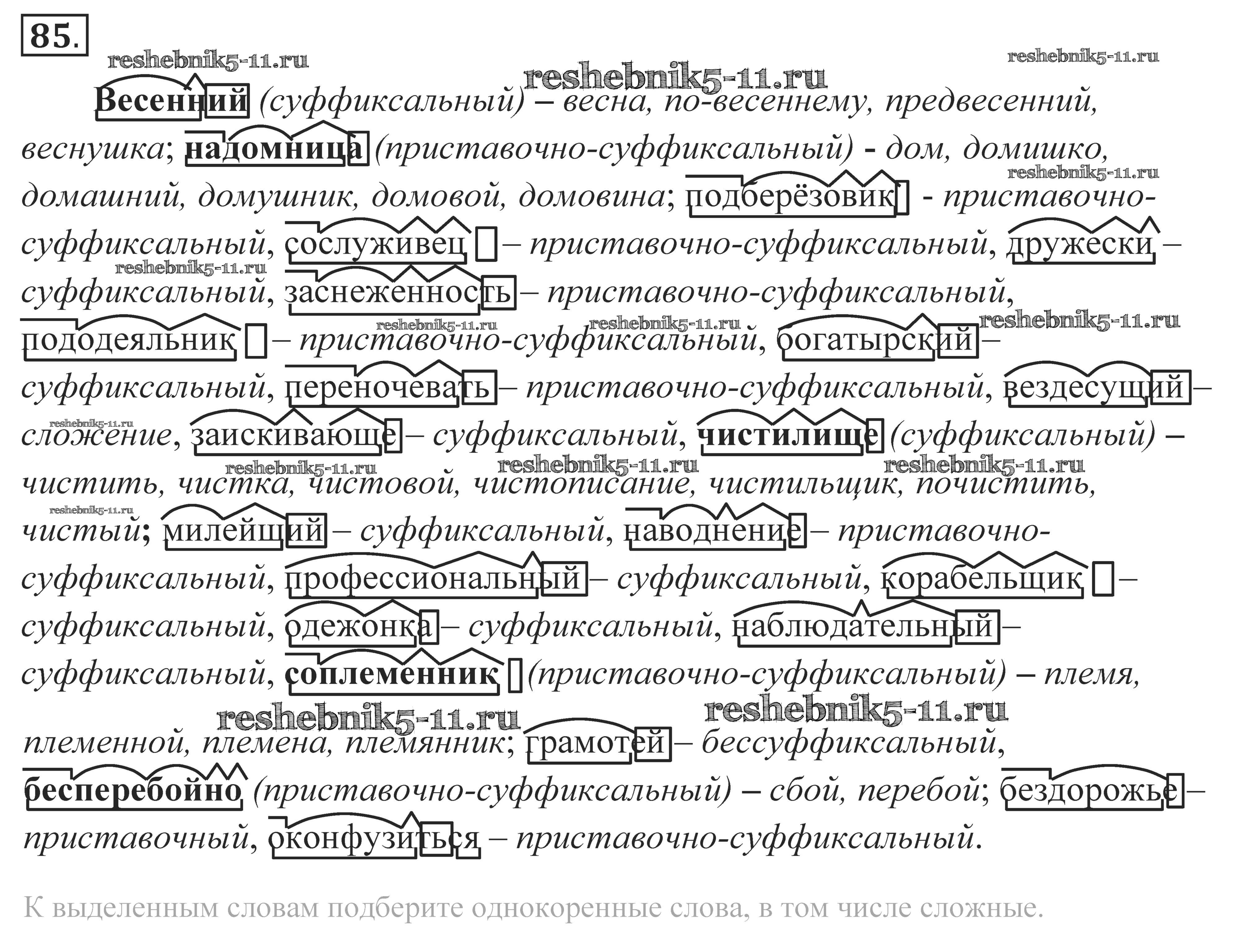 Готовая домашняя работа с ответами по Русскому языку за 10, 11 класс Власенков, Рыбченкова Учебник Базовый уровень Просвещение 2014 - Упражнения 85