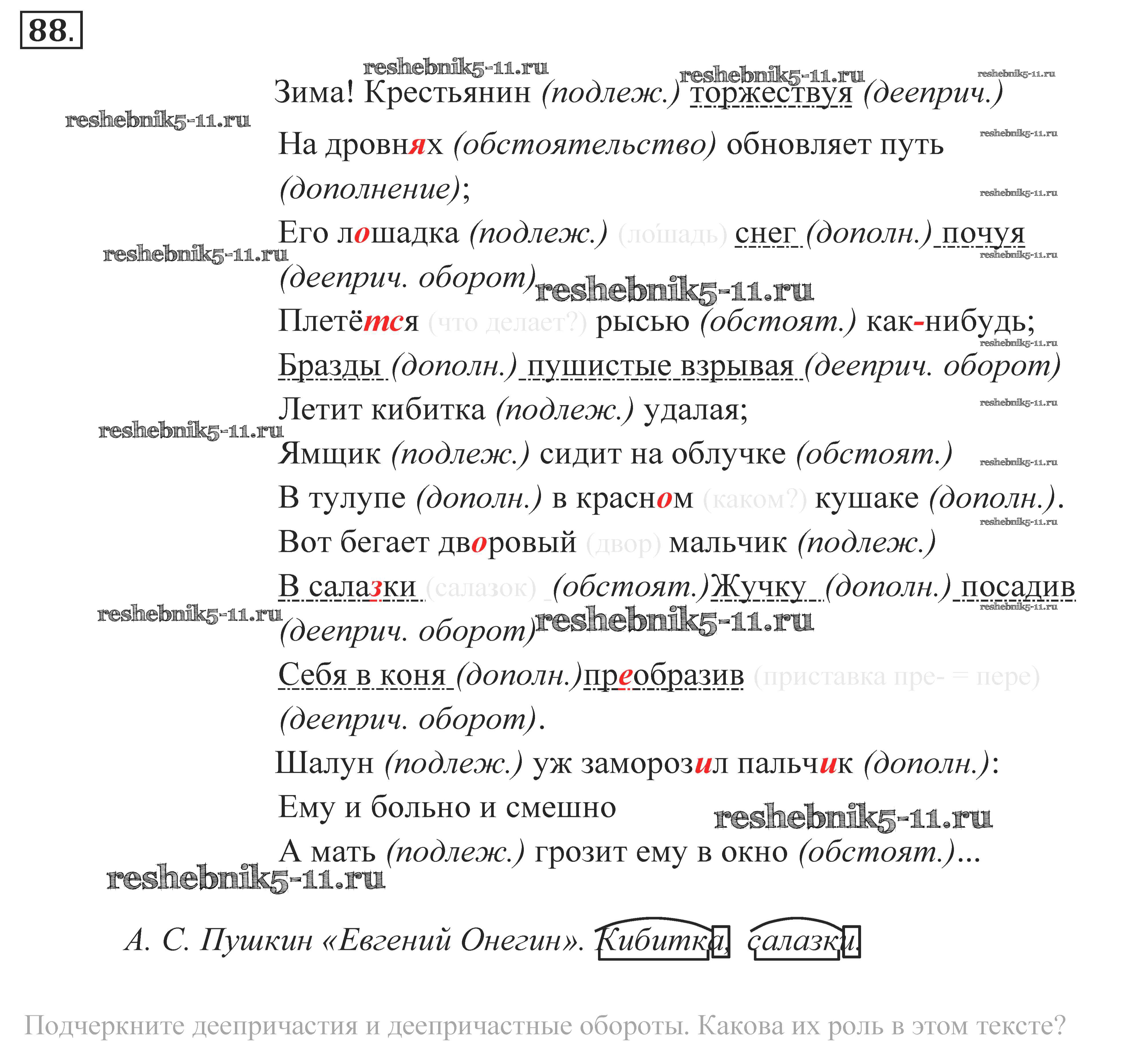 Готовая домашняя работа с ответами по Русскому языку за 10, 11 класс Власенков, Рыбченкова Учебник Базовый уровень Просвещение 2014 - Упражнения 88