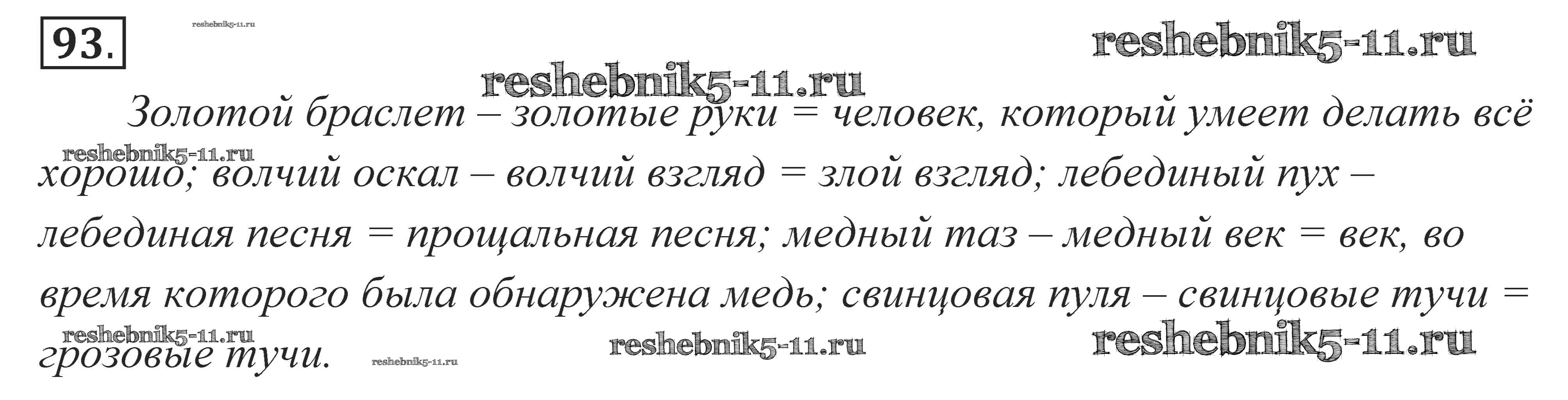 Готовая домашняя работа с ответами по Русскому языку за 10, 11 класс Власенков, Рыбченкова Учебник Базовый уровень Просвещение 2014 - Упражнения 93