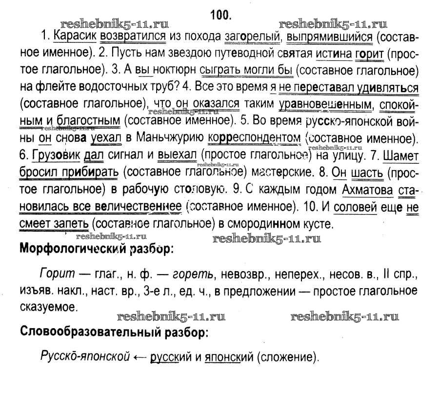 Готовая домашняя работа с ответами по Русскому языку за 11 класс Мурина, Литвинко, Долбик Учебник Национальный институт образования 2017 ФГОС - Упражнения 100
