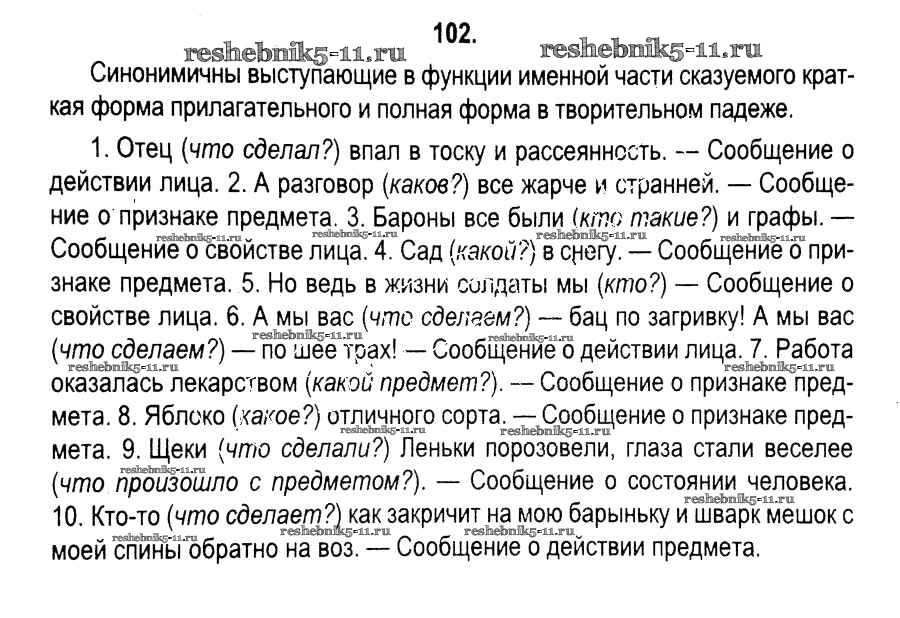 Готовая домашняя работа с ответами по Русскому языку за 11 класс Мурина, Литвинко, Долбик Учебник Национальный институт образования 2017 ФГОС - Упражнения 102