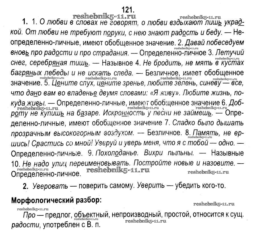 Готовая домашняя работа с ответами по Русскому языку за 11 класс Мурина, Литвинко, Долбик Учебник Национальный институт образования 2017 ФГОС - Упражнения 121
