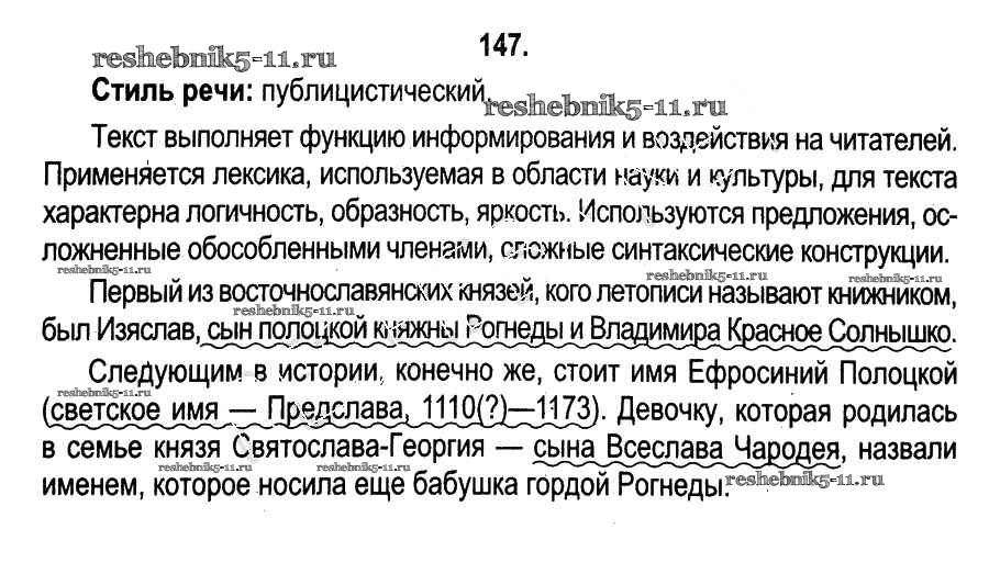 Готовая домашняя работа с ответами по Русскому языку за 11 класс Мурина, Литвинко, Долбик Учебник Национальный институт образования 2017 ФГОС - Упражнения 147