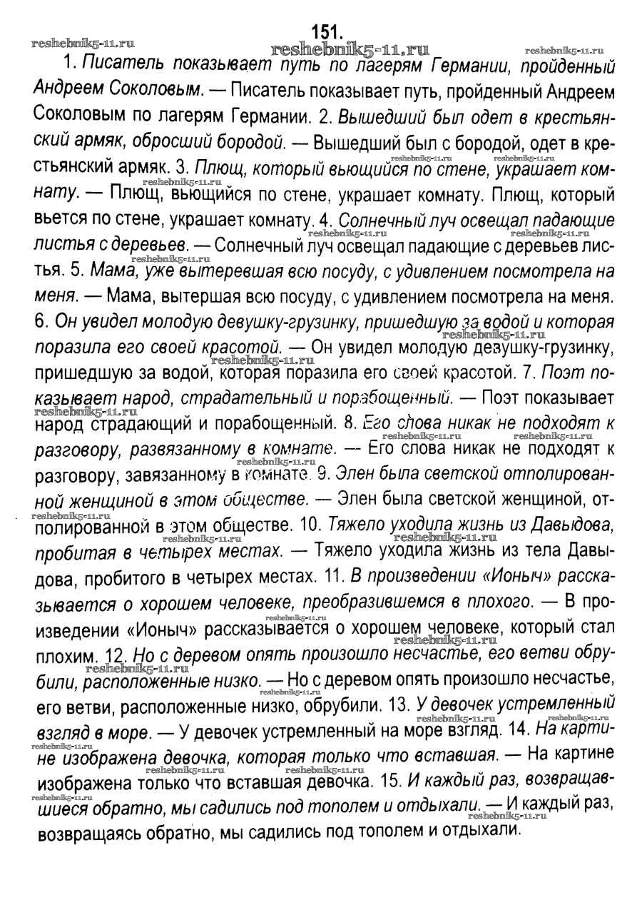 Готовая домашняя работа с ответами по Русскому языку за 11 класс Мурина, Литвинко, Долбик Учебник Национальный институт образования 2017 ФГОС - Упражнения 151