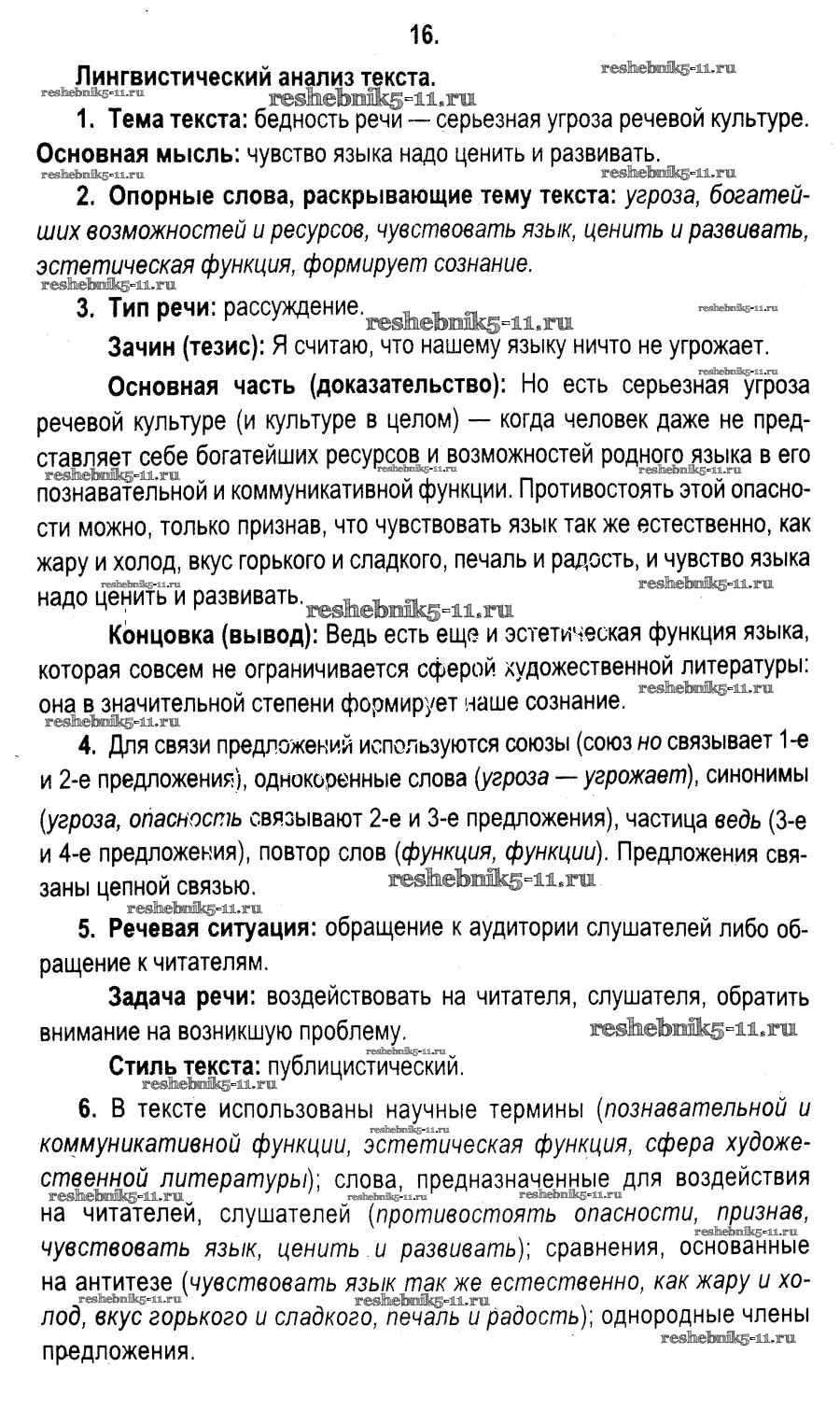 Готовая домашняя работа с ответами по Русскому языку за 11 класс Мурина, Литвинко, Долбик Учебник Национальный институт образования 2017 ФГОС - Упражнения 16