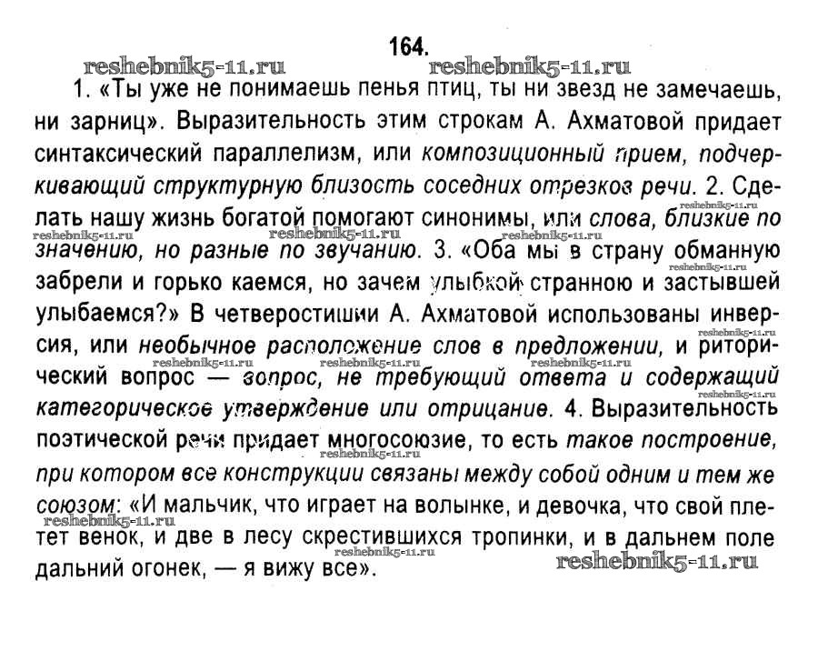 Готовая домашняя работа с ответами по Русскому языку за 11 класс Мурина, Литвинко, Долбик Учебник Национальный институт образования 2017 ФГОС - Упражнения 164