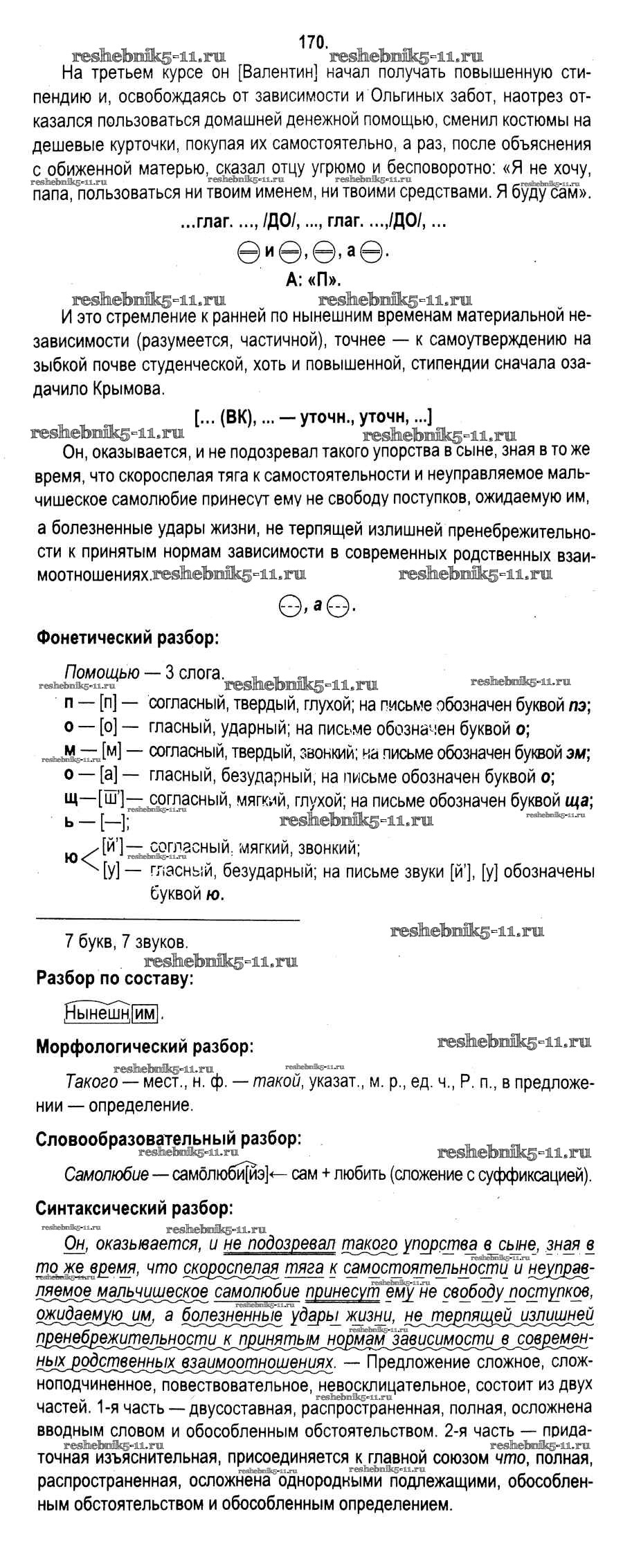 Готовая домашняя работа с ответами по Русскому языку за 11 класс Мурина, Литвинко, Долбик Учебник Национальный институт образования 2017 ФГОС - Упражнения 170