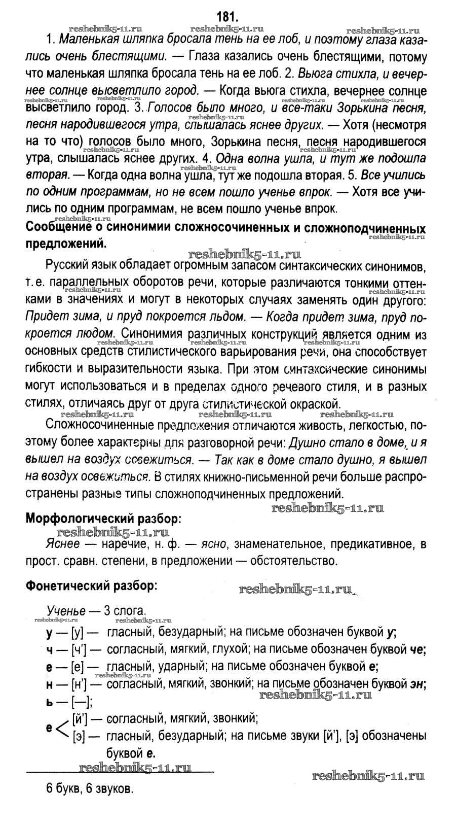 Готовая домашняя работа с ответами по Русскому языку за 11 класс Мурина, Литвинко, Долбик Учебник Национальный институт образования 2017 ФГОС - Упражнения 181