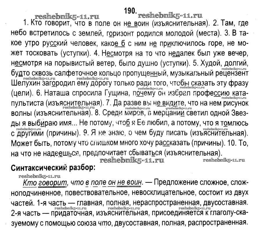 Готовая домашняя работа с ответами по Русскому языку за 11 класс Мурина, Литвинко, Долбик Учебник Национальный институт образования 2017 ФГОС - Упражнения 190