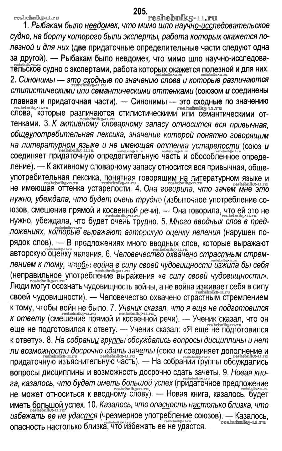 Готовая домашняя работа с ответами по Русскому языку за 11 класс Мурина, Литвинко, Долбик Учебник Национальный институт образования 2017 ФГОС - Упражнения 205