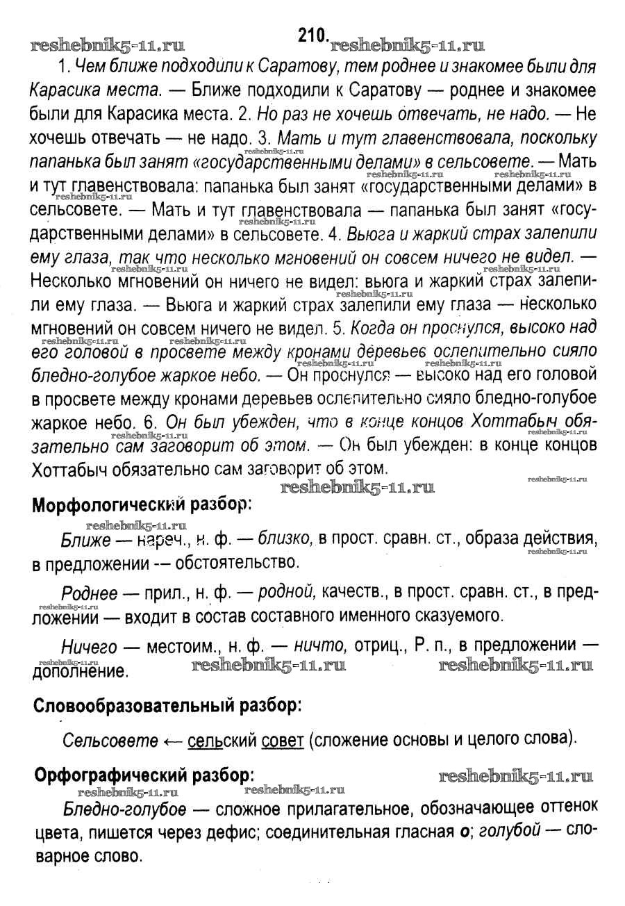 Готовая домашняя работа с ответами по Русскому языку за 11 класс Мурина, Литвинко, Долбик Учебник Национальный институт образования 2017 ФГОС - Упражнения 210