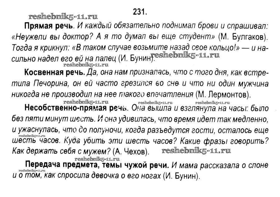 Готовая домашняя работа с ответами по Русскому языку за 11 класс Мурина, Литвинко, Долбик Учебник Национальный институт образования 2017 ФГОС - Упражнения 231