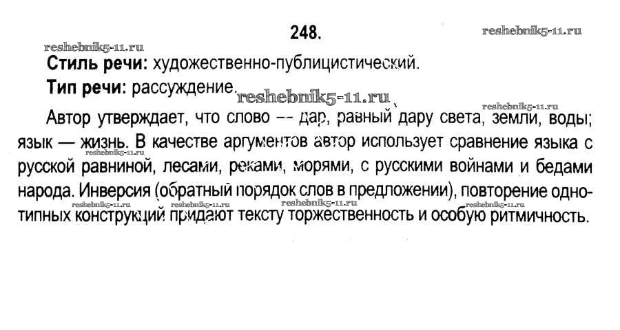 Готовая домашняя работа с ответами по Русскому языку за 11 класс Мурина, Литвинко, Долбик Учебник Национальный институт образования 2017 ФГОС - Упражнения 248