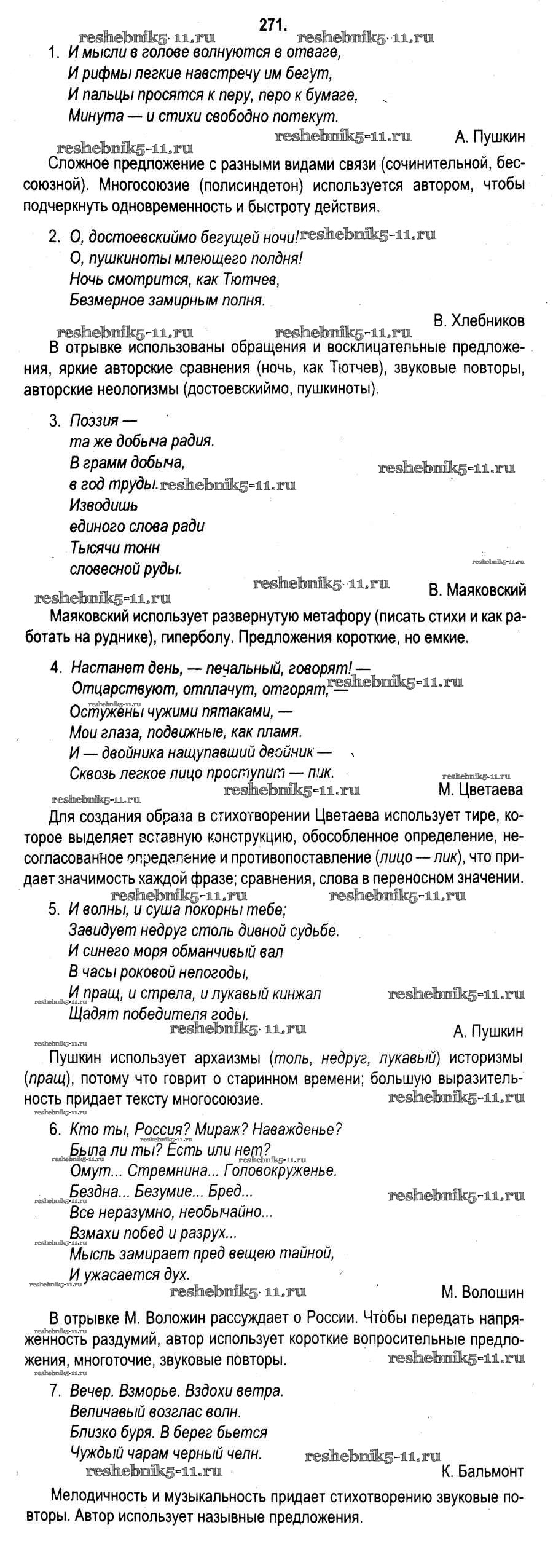 Готовая домашняя работа с ответами по Русскому языку за 11 класс Мурина, Литвинко, Долбик Учебник Национальный институт образования 2017 ФГОС - Упражнения 271