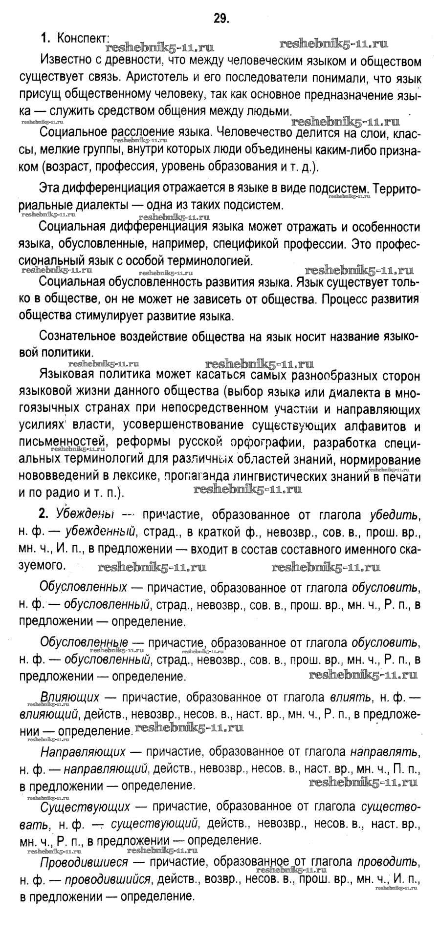Готовая домашняя работа с ответами по Русскому языку за 11 класс Мурина, Литвинко, Долбик Учебник Национальный институт образования 2017 ФГОС - Упражнения 29