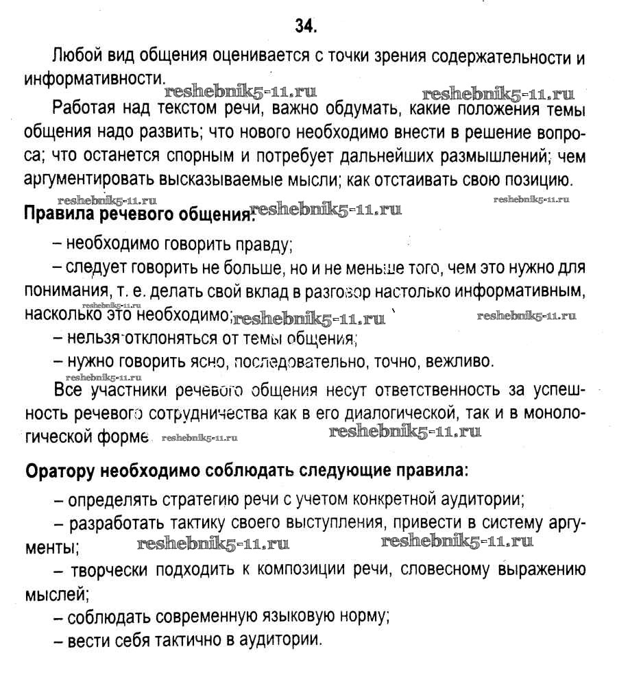 Готовая домашняя работа с ответами по Русскому языку за 11 класс Мурина, Литвинко, Долбик Учебник Национальный институт образования 2017 ФГОС - Упражнения 34