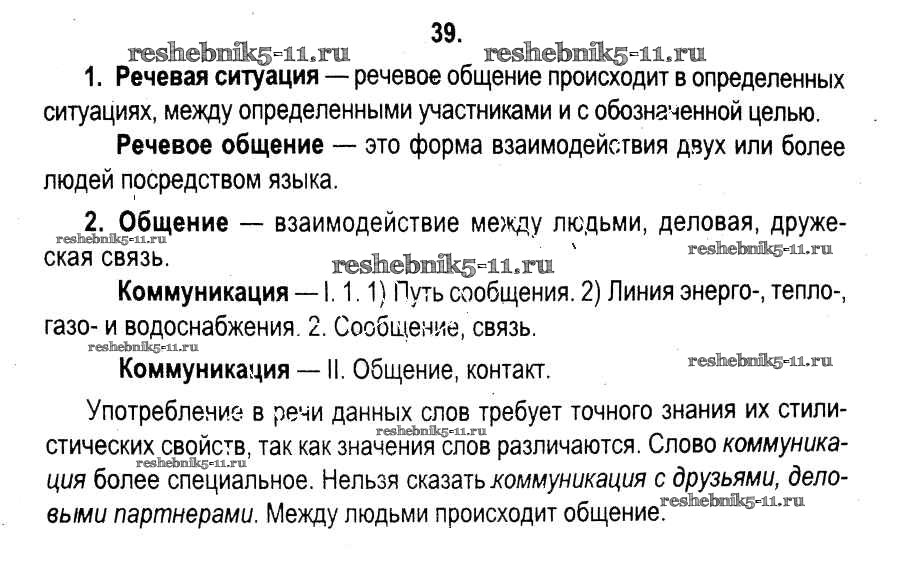 Готовая домашняя работа с ответами по Русскому языку за 11 класс Мурина, Литвинко, Долбик Учебник Национальный институт образования 2017 ФГОС - Упражнения 39