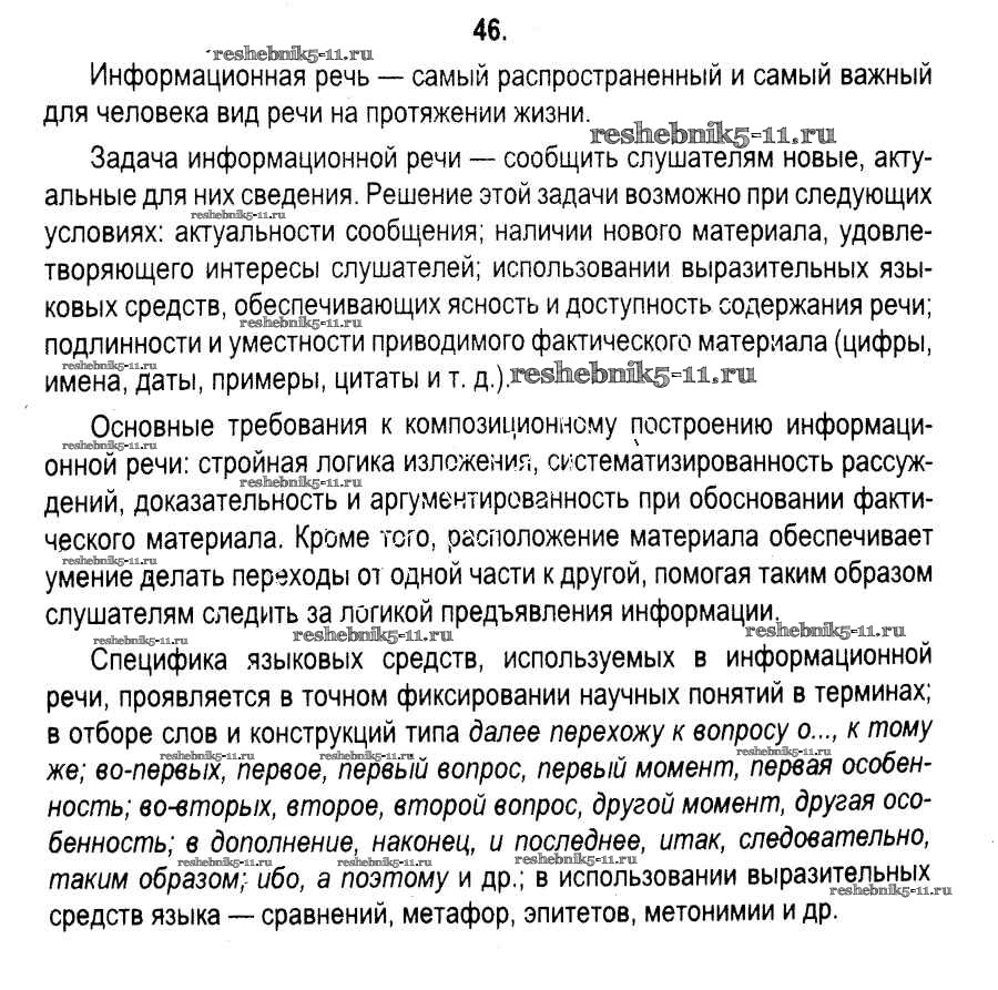Готовая домашняя работа с ответами по Русскому языку за 11 класс Мурина, Литвинко, Долбик Учебник Национальный институт образования 2017 ФГОС - Упражнения 46