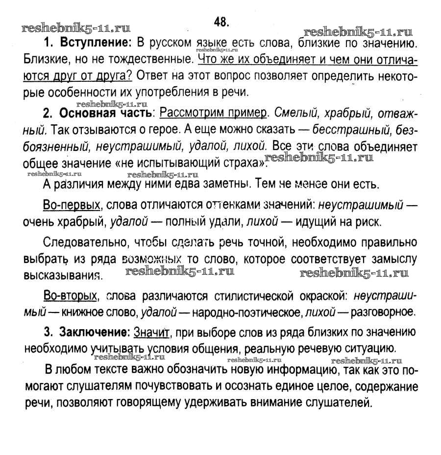 Готовая домашняя работа с ответами по Русскому языку за 11 класс Мурина, Литвинко, Долбик Учебник Национальный институт образования 2017 ФГОС - Упражнения 48