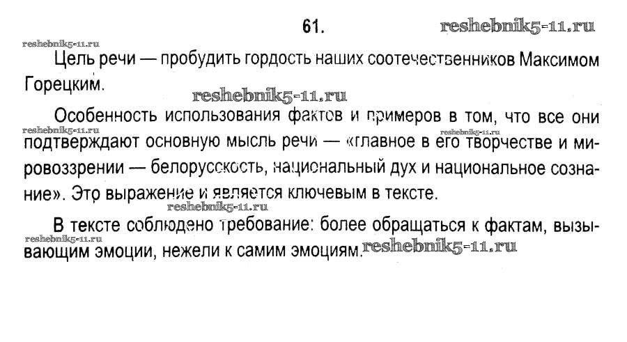 Готовая домашняя работа с ответами по Русскому языку за 11 класс Мурина, Литвинко, Долбик Учебник Национальный институт образования 2017 ФГОС - Упражнения 61