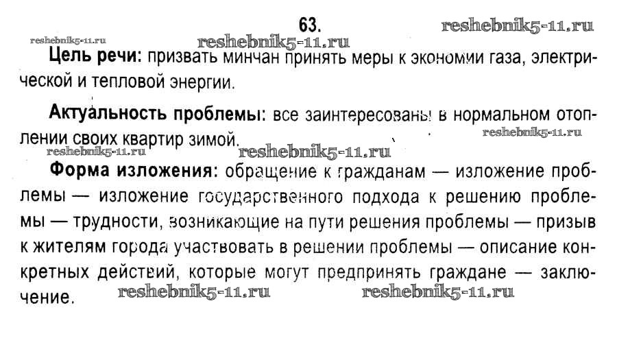 Готовая домашняя работа с ответами по Русскому языку за 11 класс Мурина, Литвинко, Долбик Учебник Национальный институт образования 2017 ФГОС - Упражнения 63