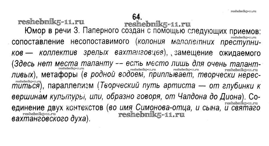 Готовая домашняя работа с ответами по Русскому языку за 11 класс Мурина, Литвинко, Долбик Учебник Национальный институт образования 2017 ФГОС - Упражнения 64