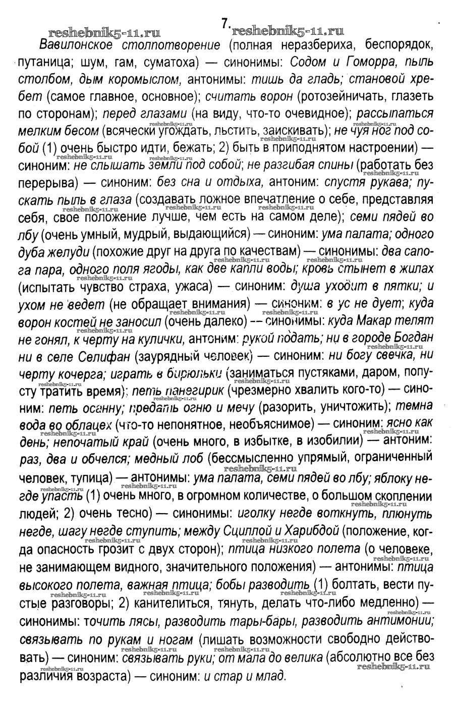 Готовая домашняя работа с ответами по Русскому языку за 11 класс Мурина, Литвинко, Долбик Учебник Национальный институт образования 2017 ФГОС - Упражнения 7