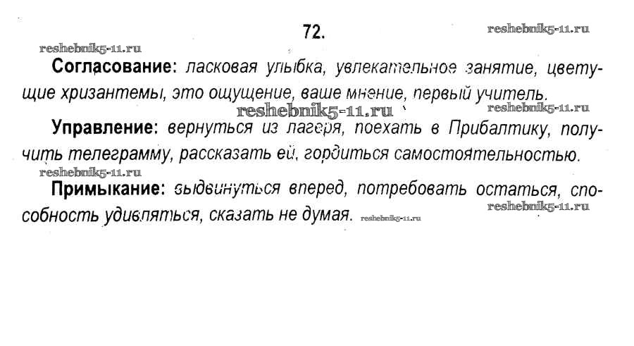 Готовая домашняя работа с ответами по Русскому языку за 11 класс Мурина, Литвинко, Долбик Учебник Национальный институт образования 2017 ФГОС - Упражнения 72