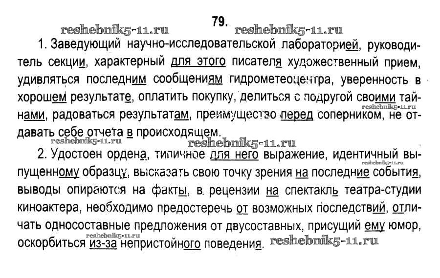 Готовая домашняя работа с ответами по Русскому языку за 11 класс Мурина, Литвинко, Долбик Учебник Национальный институт образования 2017 ФГОС - Упражнения 79