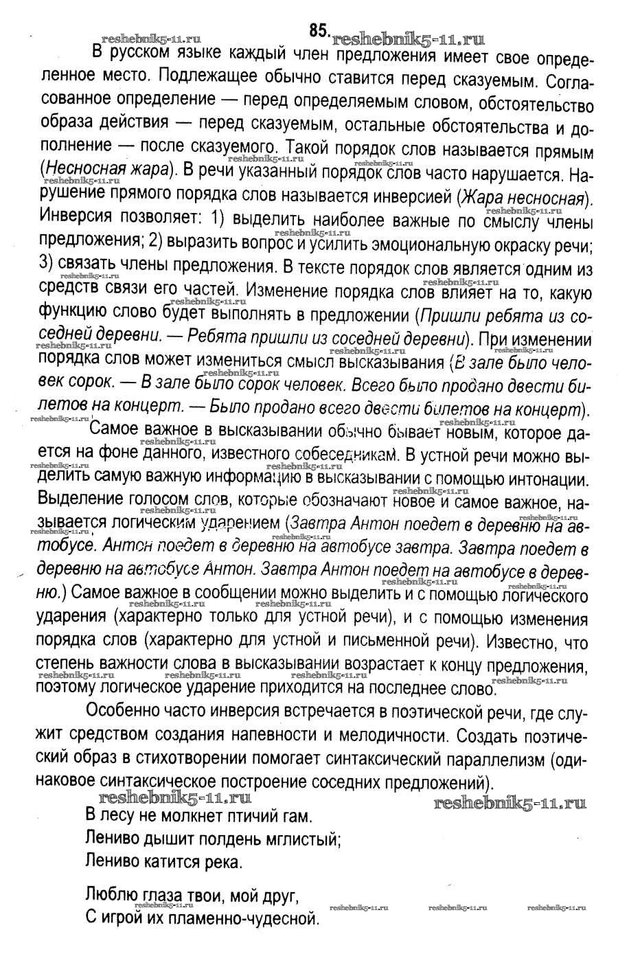 Готовая домашняя работа с ответами по Русскому языку за 11 класс Мурина, Литвинко, Долбик Учебник Национальный институт образования 2017 ФГОС - Упражнения 85