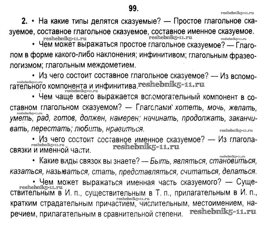 Готовая домашняя работа с ответами по Русскому языку за 11 класс Мурина, Литвинко, Долбик Учебник Национальный институт образования 2017 ФГОС - Упражнения 99