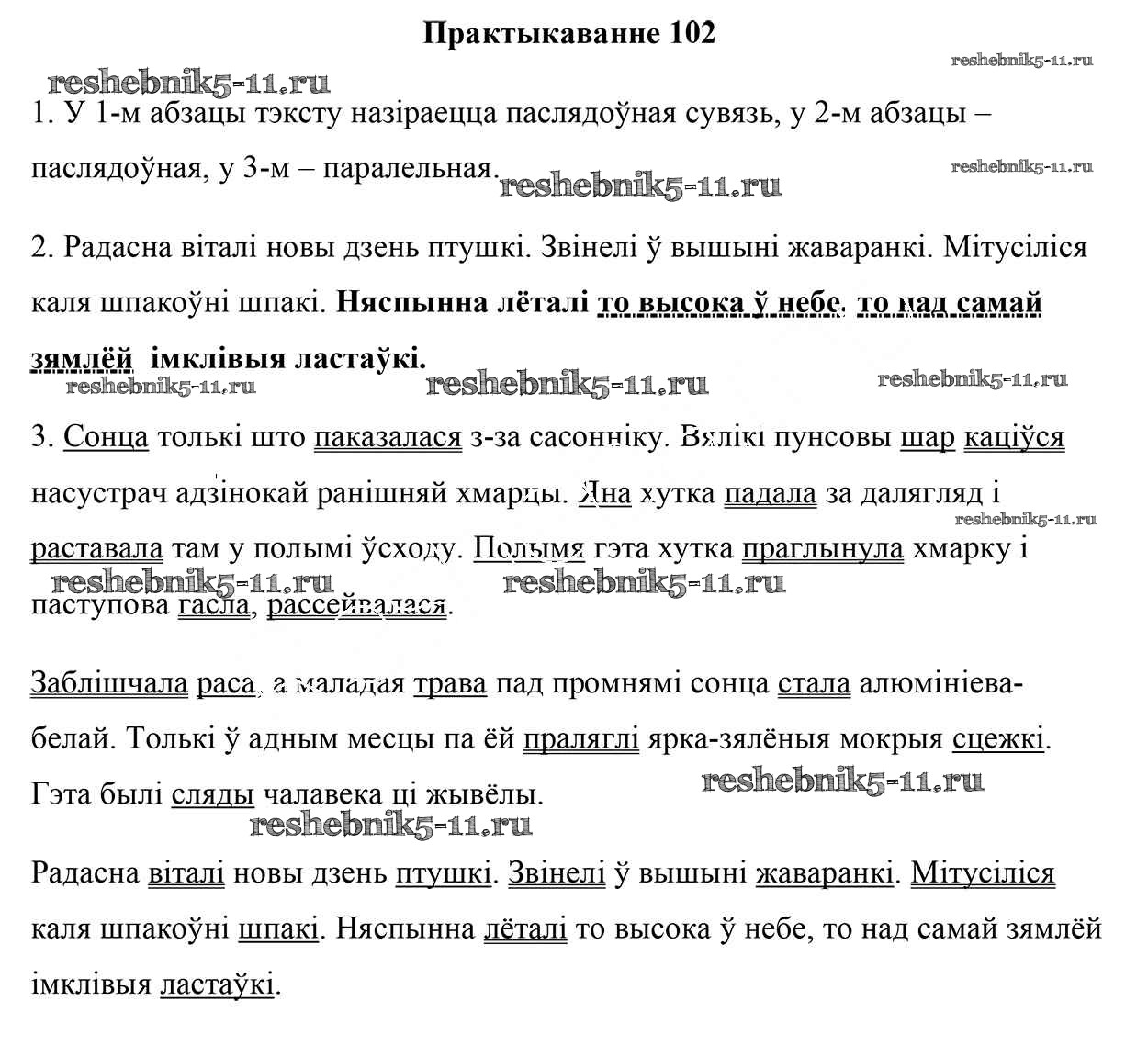 Готовая домашняя работа с ответами по Белорусскому языку за 5 класс Валочка, Зелянко, Мартынкевіч, Якуба Учебник Часть 1, 2 Национальный институт образования 2019 ФГОС - Часть 1. Практыкаванні 102