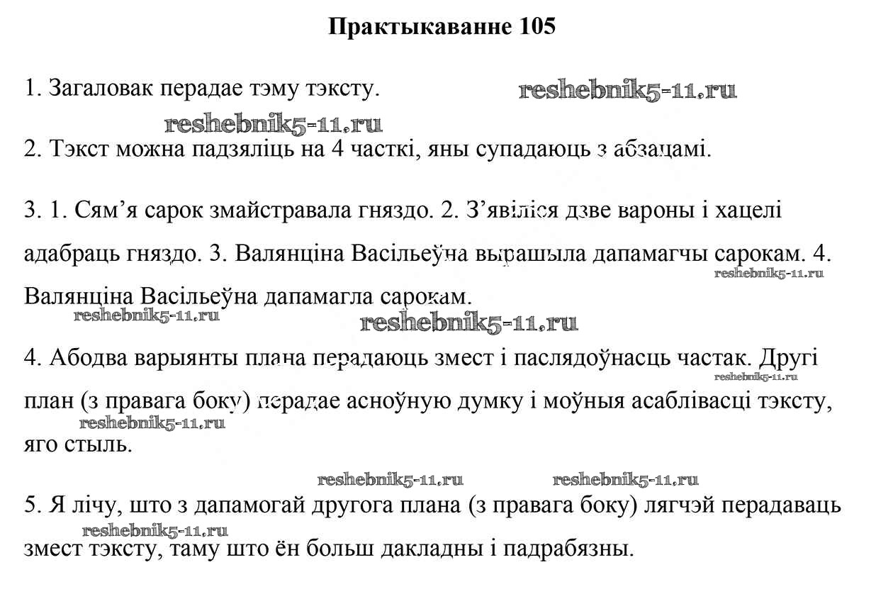 Готовая домашняя работа с ответами по Белорусскому языку за 5 класс Валочка, Зелянко, Мартынкевіч, Якуба Учебник Часть 1, 2 Национальный институт образования 2019 ФГОС - Часть 1. Практыкаванні 105