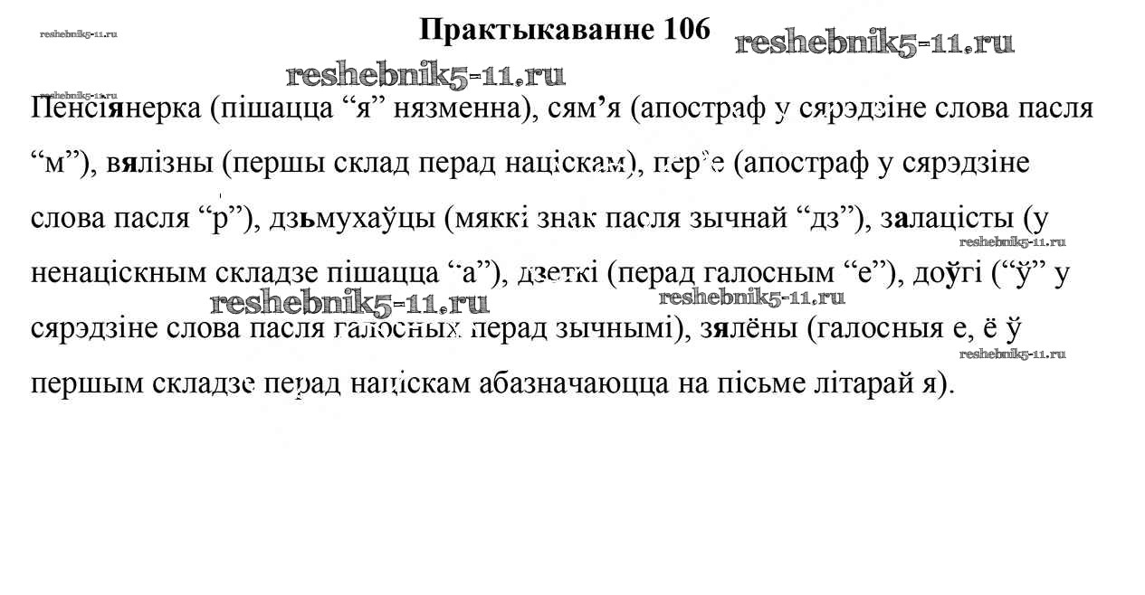 Готовая домашняя работа с ответами по Белорусскому языку за 5 класс Валочка, Зелянко, Мартынкевіч, Якуба Учебник Часть 1, 2 Национальный институт образования 2019 ФГОС - Часть 1. Практыкаванні 106