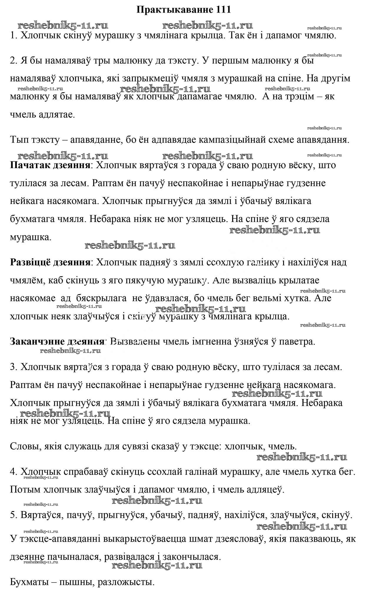 Готовая домашняя работа с ответами по Белорусскому языку за 5 класс Валочка, Зелянко, Мартынкевіч, Якуба Учебник Часть 1, 2 Национальный институт образования 2019 ФГОС - Часть 1. Практыкаванні 111