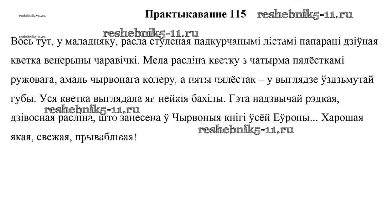 Готовая домашняя работа с ответами по Белорусскому языку за 5 класс Валочка, Зелянко, Мартынкевіч, Якуба Учебник Часть 1, 2 Национальный институт образования 2019 ФГОС - Часть 1. Практыкаванні 115