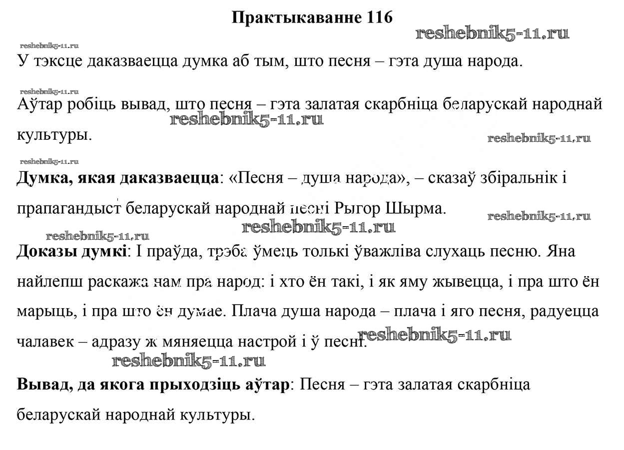 Готовая домашняя работа с ответами по Белорусскому языку за 5 класс Валочка, Зелянко, Мартынкевіч, Якуба Учебник Часть 1, 2 Национальный институт образования 2019 ФГОС - Часть 1. Практыкаванні 116