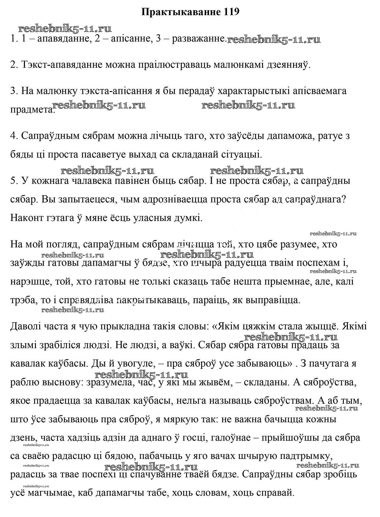 Готовая домашняя работа с ответами по Белорусскому языку за 5 класс Валочка, Зелянко, Мартынкевіч, Якуба Учебник Часть 1, 2 Национальный институт образования 2019 ФГОС - Часть 1. Практыкаванні 119