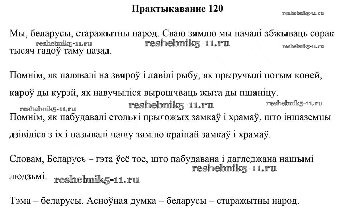 Готовая домашняя работа с ответами по Белорусскому языку за 5 класс Валочка, Зелянко, Мартынкевіч, Якуба Учебник Часть 1, 2 Национальный институт образования 2019 ФГОС - Часть 1. Практыкаванні 120