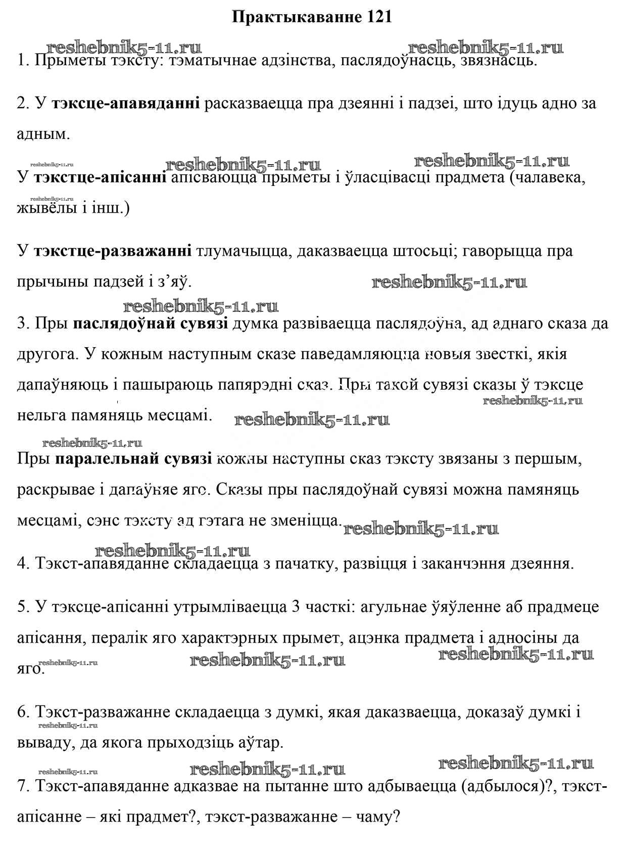 Готовая домашняя работа с ответами по Белорусскому языку за 5 класс Валочка, Зелянко, Мартынкевіч, Якуба Учебник Часть 1, 2 Национальный институт образования 2019 ФГОС - Часть 1. Практыкаванні 121