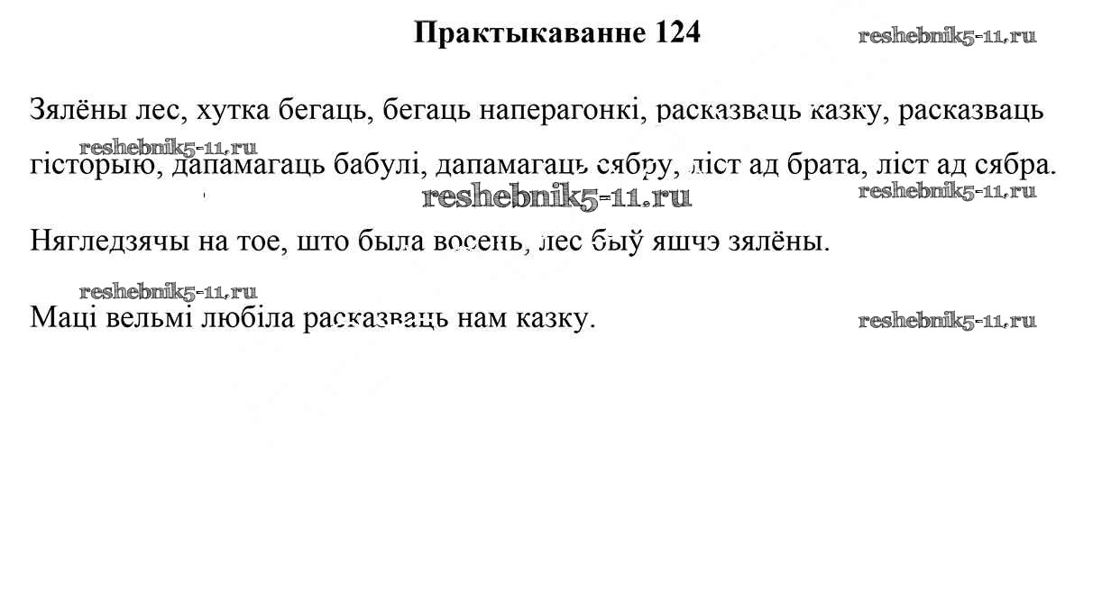 Готовая домашняя работа с ответами по Белорусскому языку за 5 класс Валочка, Зелянко, Мартынкевіч, Якуба Учебник Часть 1, 2 Национальный институт образования 2019 ФГОС - Часть 1. Практыкаванні 124