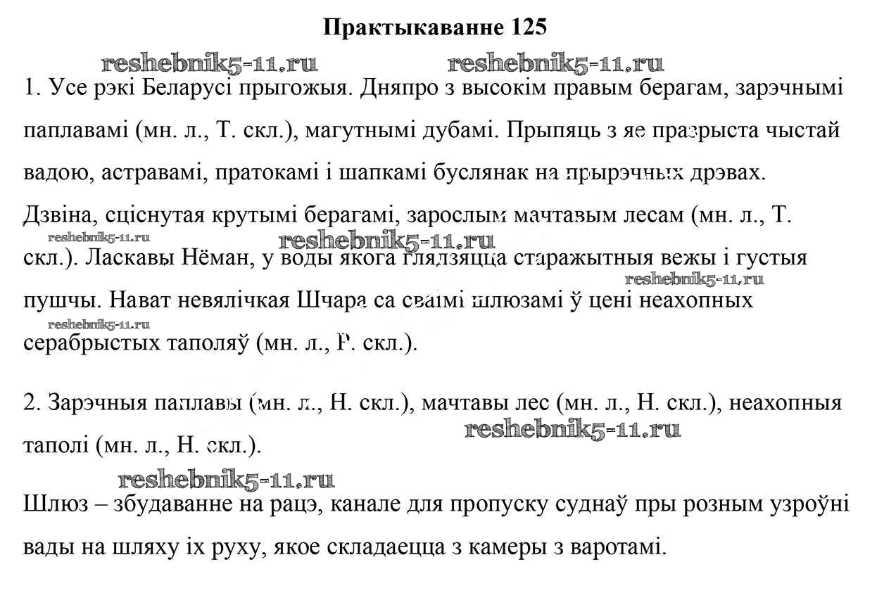 Готовая домашняя работа с ответами по Белорусскому языку за 5 класс Валочка, Зелянко, Мартынкевіч, Якуба Учебник Часть 1, 2 Национальный институт образования 2019 ФГОС - Часть 1. Практыкаванні 125