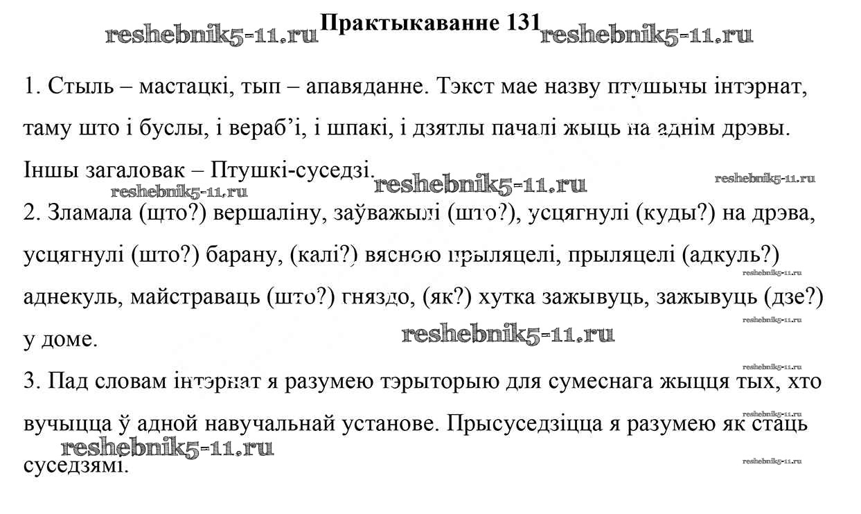 Готовая домашняя работа с ответами по Белорусскому языку за 5 класс Валочка, Зелянко, Мартынкевіч, Якуба Учебник Часть 1, 2 Национальный институт образования 2019 ФГОС - Часть 1. Практыкаванні 131