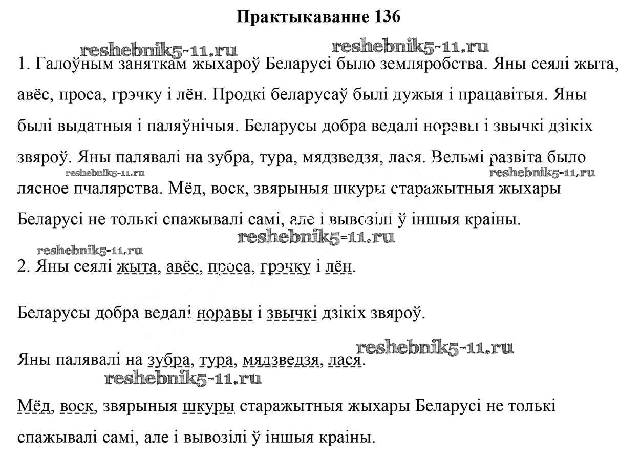 Готовая домашняя работа с ответами по Белорусскому языку за 5 класс Валочка, Зелянко, Мартынкевіч, Якуба Учебник Часть 1, 2 Национальный институт образования 2019 ФГОС - Часть 1. Практыкаванні 136