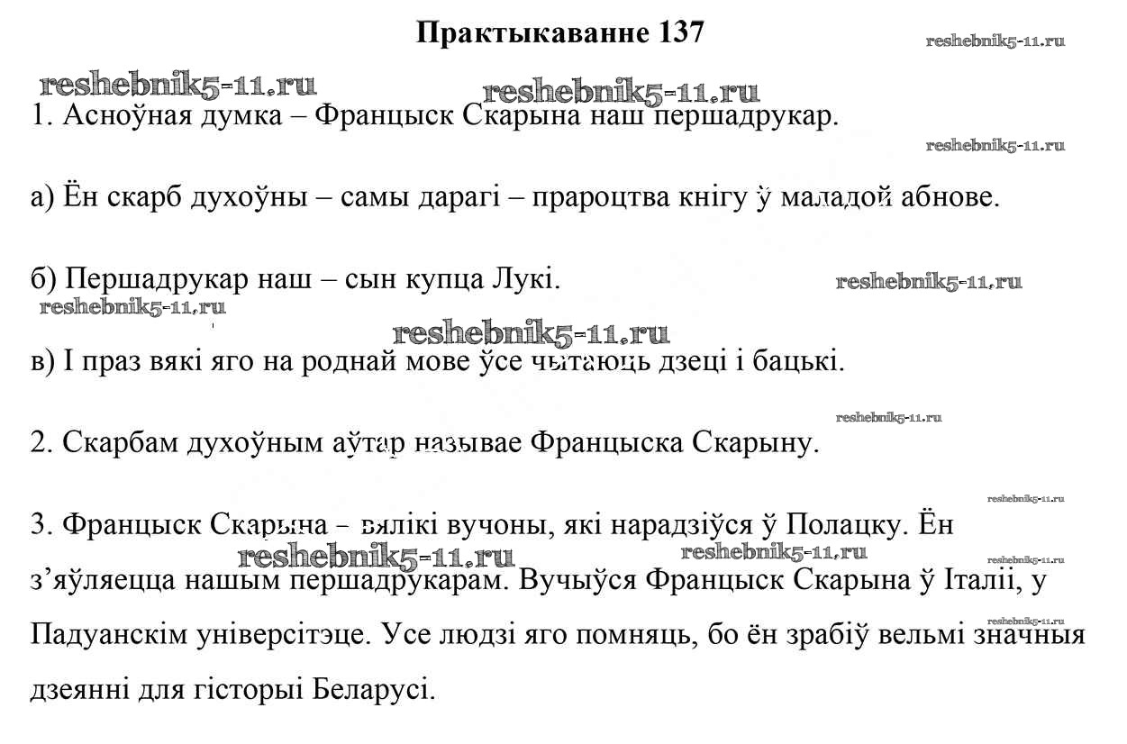 Готовая домашняя работа с ответами по Белорусскому языку за 5 класс Валочка, Зелянко, Мартынкевіч, Якуба Учебник Часть 1, 2 Национальный институт образования 2019 ФГОС - Часть 1. Практыкаванні 137